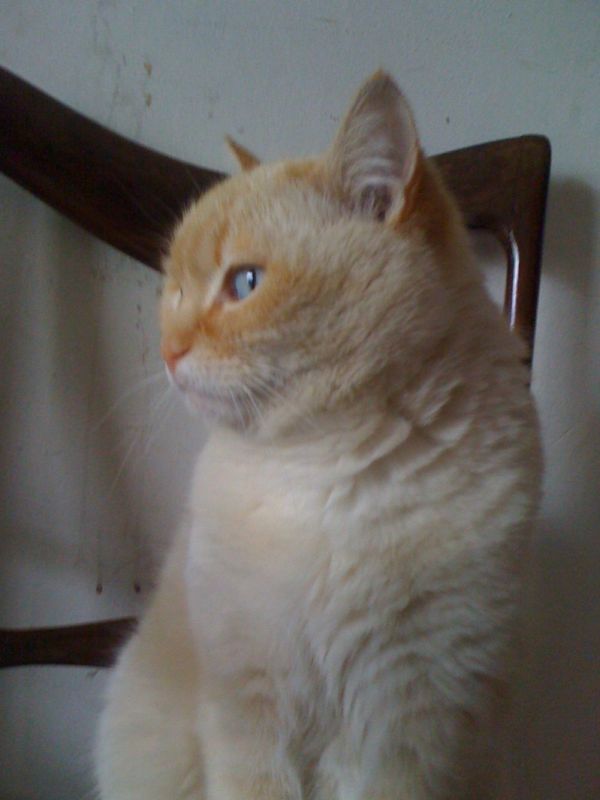 Piccola premessa, anche io ho avuto un gatto con gli occhi azzurri, bianco, completamnte sordo; poi un altro, bianco, un occhio azzurro ed uno verde, sordo anche quello. Il tuo gatto, Gianluca, potrebbe essere incrociato con un certosino, di cui (per la mia piccola esperienza) ha la struttura fisica e i tratti "somatici" del muso. Però come ti hanno già detto gli altri utenti, è difficile risalire alle razze che ahnno prodotto questo splendido gattone, anche perchè a loro volta i genitori potrebbero essere meticci! Ogni gatto è un modo a sè. Il carattere, il modo di reagire ad una stessa azione o impulso, varia da gatto a gatto. Il gatto è un individualista. La razza è proprio l'ultima cosa che conta in un micio