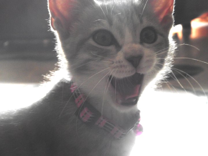 lei è la mia bimba! l'unica cosa che mi preoccupa è il suo modo di manifestare i sentimenti , lei ha un modo diverso di dire ti voglio bene , non come gli altri gatti, lei per salutarti ti si arrampica nella maglietta e ti morde le orecchie