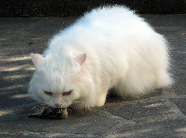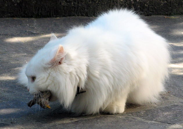 Foto di qualche minuto fa...ho visto il Pino Parker all'attacco e ho pensato di immortalare la sua orrenda missione...per il malcapitato, non c'era più nulla da fare! Parker non è obeso, anche se con tutto quel pelo sembra enorme. Ha 11 anni, è sterilizzato, mangia croccantini e scatolette quando vuole, si sa controllare con il cibo, che non manca mai e quindi non è mai affamato...l'istinto per la caccia è tale che non perde occasione per catturare di tutto, dai volatili ai topi anche belli grossi, talpe, lucertole a go-go, qualche sventurata farfalla, etc...non disdegna nemmeno i grilli che sgranocchia come aperitivo. Ha una rapidità di movimenti che lascia a bocca aperta. Il resto del giorno? Dorme! E si fa coccolare in continuazione, è come un peluche. Tranne quando è a caccia!!!