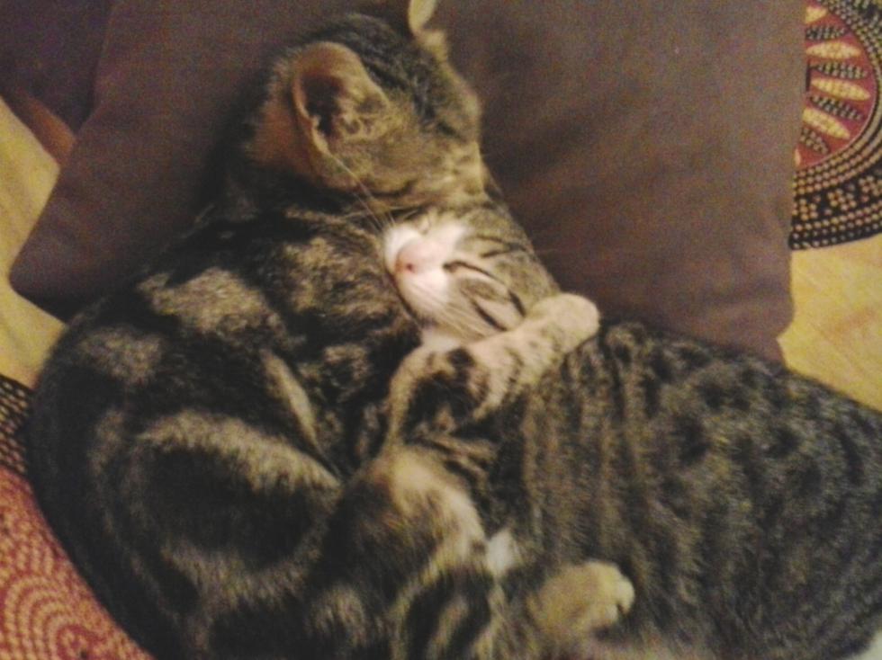 Era Novembre quando iniziai a scrivere qui a causa del problema coi gatti . Si perché non bastavano solo le galline. Da brava amante degli animali , ho dato vita ad uno zoo attorno a casa. Da allora ci sono stati sviluppi piacevoli ed altri meno. Simba, tanto per cominciare, il gattino grigio azzannato dal cane del mio compagno, è deceduto dopo l'operazione al canile la Muratella, di Roma. Ero ritornata dopo circa due settimane per riprenderlo ma questa fu la risposta. Non potete neanche immaginare le lacrime. Così mi sono messa all' incessante ricerca di una casa per gli altri b3 trovatelli. Non volevo affezionarmi più a nessuno animale in particolare. Le due femmine hanno trovato Delle ragazze altrettanto dolci e sensibili che cercavano un animale da compagnia. A me rimase il maschio e mi trovai punto è a capo con un gatto, perdipiu dentro casa. Misi mille annunci ma chi chiamava non mi allettava particolarmente. Quasi sempre un genitore che "cercava un regalo" per la figlia. A pelle rifiuto chi vede cani o gatti come "regali" ...Ma probabilmente ho acquisito una sensibilità differente solo perché adesso ce li ho in casa...E adesso so cosa vuol dire. Lui l'ho chiamato Toby. Non ci avrei mai scommesso un centesimo che un gatto potesse farmi così tanto ridere... Se vuoi capire un gatto...Prova ad essere un gatto. Un abbraccio a tutti.