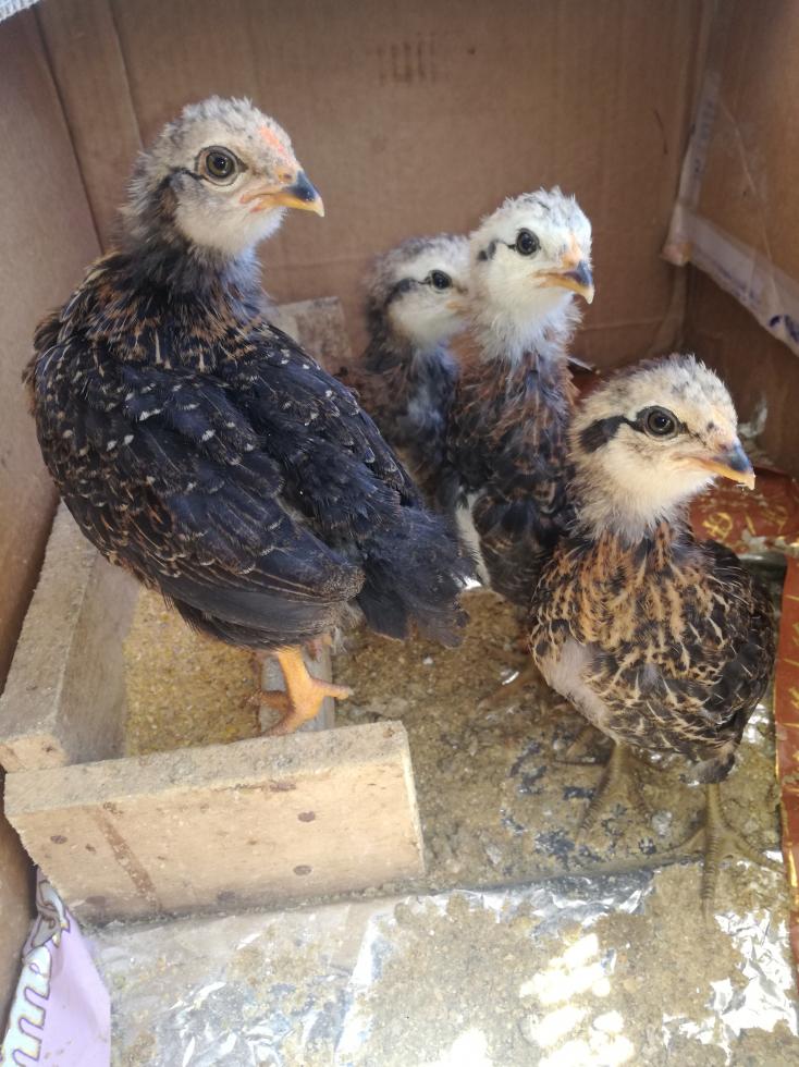 Alla fine la seconda incubata ha portato a fine periodo due uova, che si sono entrambe schiuse. Risultato di cui non mi lamento perché cmq erano 10 uova di 21 gg. Inoltre avendo cambiato nella seconda schiusa solo la temperatura rispetto alla prima incubata, deduco sia stato il suo mancato abbassamento ad aver causato la moria dei pulcini della prima schiusa. Nelle foto vi volevo far vedere i 4 che ormai hanno 23 gg e gli ultimi due che ne hanno appena 3 di giorni.