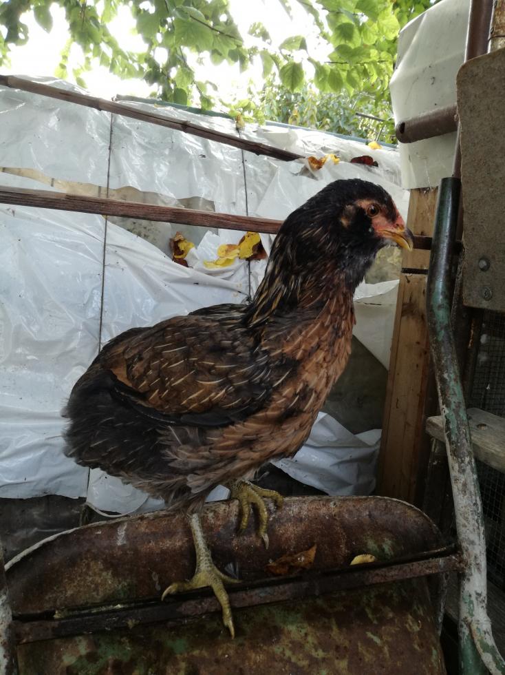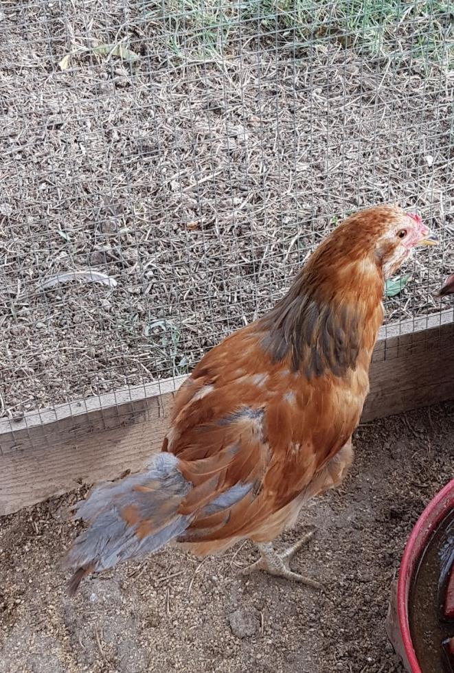 Sta ancora rimettendo le penne della coda e del collo e gli stanno spuntando gli speroni.