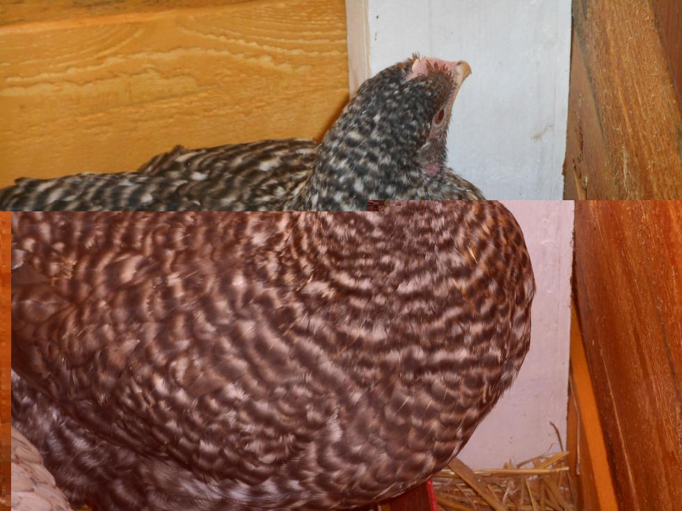 Dipende dal carattere che si prende in esame. Due meticci imparentati e molto simili a volte possono dare prole più omogenea rispetto alla prole originata da un gallo puro e una gallina meticcia. Faccio un esempio: i due soggetti in foto hanno un disegno barrato, per cui la loro prole sarà tutta barrata (magari con brutta barratura e presenta di altri colori); viceversa se si accoppia una gallina barrata con un gallo non barrato la prole sarà metà barrata (i maschi) e metà non barrata (le femmine)