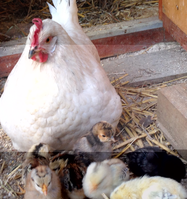 Quale era la categoria per incroci prodotti senza alcun perché, così per vedere cosa usciva fuori, C o D? Insomma, è per quella... Il padre era un ibrido, ma come forma mi ricordava tantissimo Dorking, compreso dita in più. Mamme rosse ovaiole e bianche livornesi. Sono uscite fuori tutte chioccie e non sono male neanche per le uova quando non covano, quasi quasi mi dispiace che non ho più il gallo...