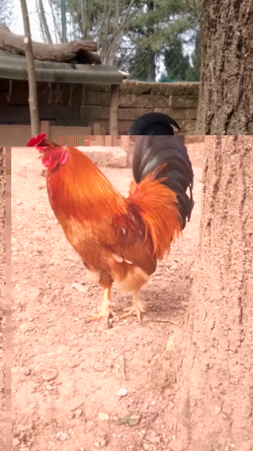 il "figo" del pollaio (Chabo fulvo x elvira) Fagiano perche' vola sempre, anche quando lascio la porta aperta lui esce volando sopra la rete. E' sempre in giro con elvira.