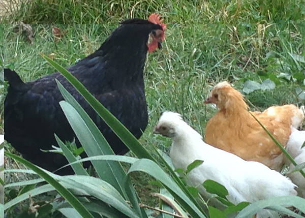 Commento file: Quella rossa è incrocio con ovaiola, ha le zampe, pelle scura e il ciuffo in testa come papà, piume normali come la mamma.