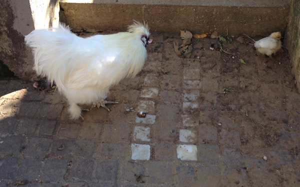 Io ho il gallo moroseta con le ovaiole rosse e le livornesi banche, e nessuna si è mai lamentata. Il mio comunque è più o meno la stessa grandezza delle ovaiole, non so se forse uno di misura un po' più piccola avrebbe dei problemi se l'intento è quello di fargli fare i pulcini. Nel mio caso, le uova che ho fatto covare erano tutte fecondate. Aggiungo anche che mentre io non sono esperta sulla genetica, ho letto su un altro sito che in questo incrocio (o qualsiasi altro con gallina zampe gialle o bianche), si riconoscono le femmine e maschi alla nascità, perché le femmine avranno le zampe e probabilmente anche la pelle nera, mentre i maschi giallo/bianco come la madre - con i miei era vero.