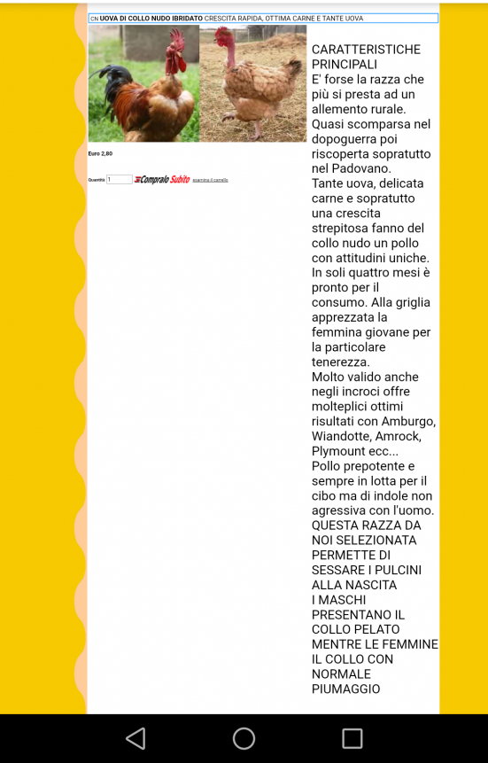 Riprendo questa discussione dicendo che non sono riuscito a contattare la relatrice del PowerPoint, ma comunque cercando su internet ho visto che su un sito , vendono uova di collo nudo ibridato, (da quanto c'è scritto) razza da loro selezionata e sessabile in quanto i pulcini maschi presentano il collo nudo, mentre le femmine presentano il collo normalmente impiumato.