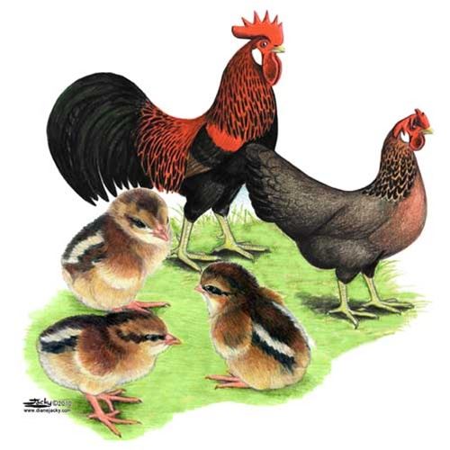 La livorno è un caso patologico ....come la Siciliana.... è una razza molto antica è le mutazioni hanno avuto il tempo di esprimersi e probabilmente sono nate con queste razze . Il selvatico della livorno è scuro come quello della seconda immagine non può essere preso a modello del selvatico , c'è da dire che una mutazione del selvatico diventata perniciata è stata isolata proprio nella livorno e ci sono certezze che si tratti di eb nessuno però degli studiosi moderni ci dice come sono i pulcini di questo tipo di perniciato cosa cambia rispetto al altri perniciati non viene spiegato .I pulcini con le strisce negli occhi sono selvatici ,il tono grigio o rosso dipende dall'azione dei geni sul pigmento rosso (feomelanina) e il pigmento nero (eumelanina)questi 2 pigmenti sono i responsabili di tutta la gamma di colorazioni, basta l'influenza di un gene per schiarire o scurire sia il piumino che il colore finale . La cosa interessante dal punto di vista pratico è che la livorno ha nel sangue questa caratteristica double-face del chiaro e scuro e gli inglesi hanno capito bene il discorso tanto da dividere le due tonalità .