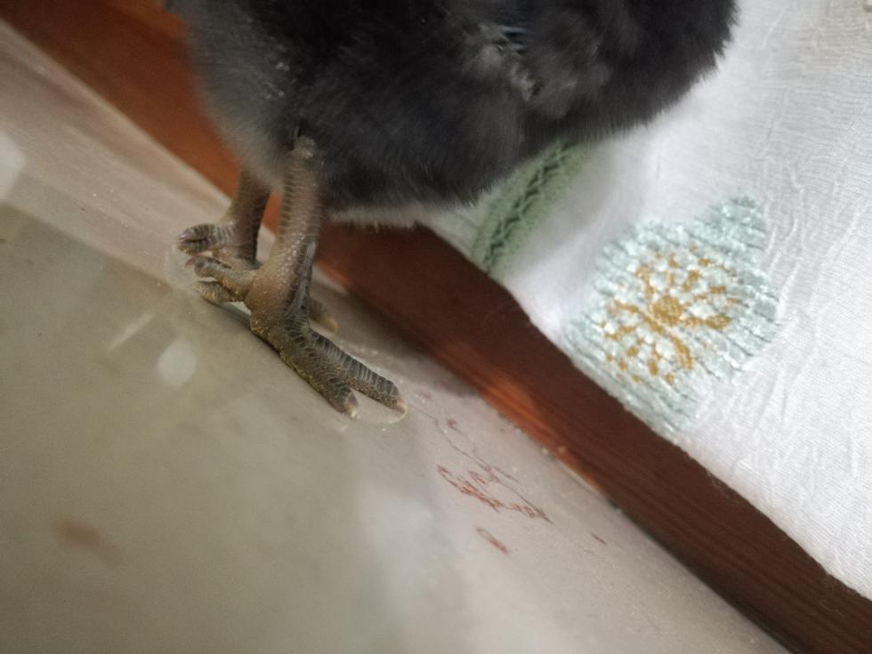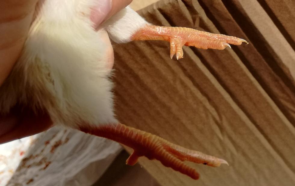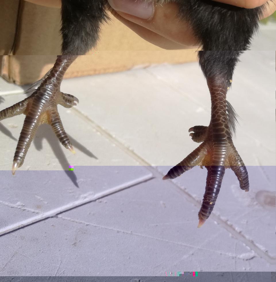 Ecco delle foto migliori...i due pulcini neri hanno 5 dita su entrambe i tarsi, mentre quello bianco solo su una zampetta.