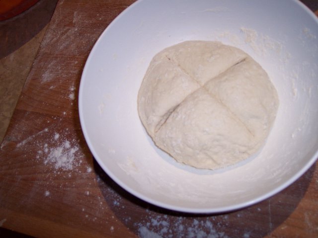 si fa una croce (se non non lievita) si copre con uno strofinaccio e si tiene al caldo (in inverno vicino al termo o alla stufa) occorre aspettare fino a che il volume non radoppia