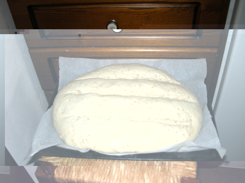 si fa ancora lievitare (come prima) poi si riimpasta e si forma una pagnotta o due o tre filoni