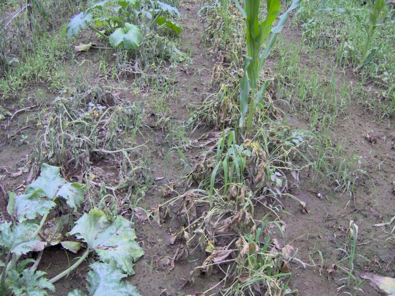 Come potete notare, si è salvato solo il mais e.... le infestanti. Ecco altre foto Allegato: