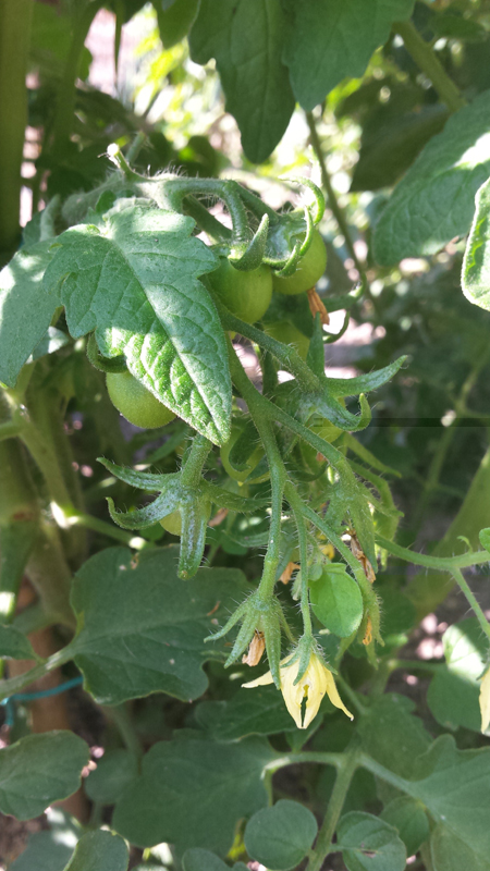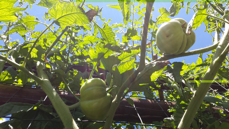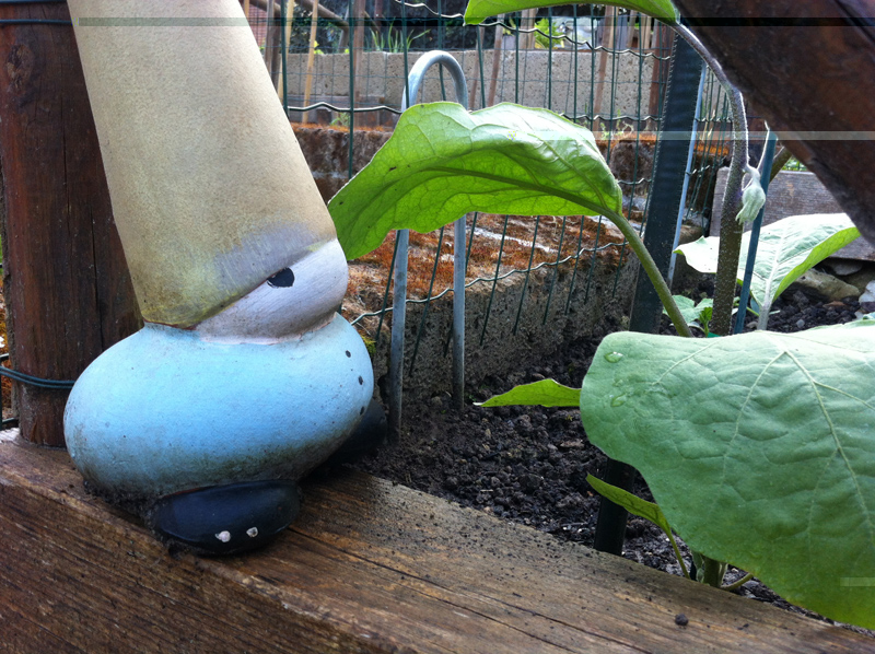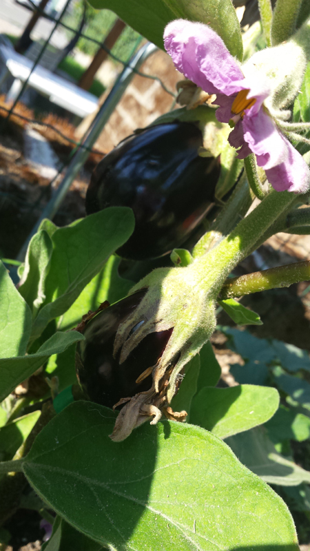 Passiamo ai primi di Giugno... Ecco la melanzana (e i suoi frutti), i cetrioli e i suoi frutti e i pomodori che finalmente si affacciano  Allegato:
