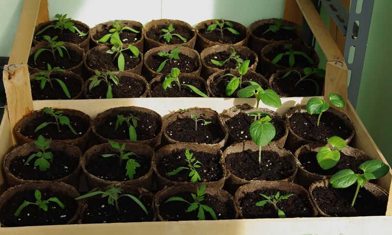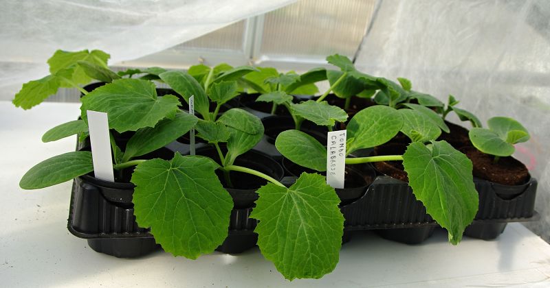le piante di zucchina sono già pronte, i pomodori no, ho fatto il primo trapianto per dare spazio alle piantine ormai "strette" nei contenitori alveolari,