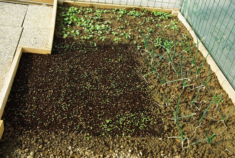 dall'altra parte ancora ravanelli e un pò di insalata appena trapiantata Allegato: