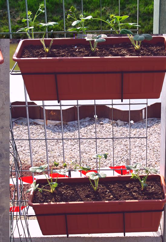 vista la stagione ho messo fuori anche le fragole, sfruttando anche la spazio verticale!! Allegato: