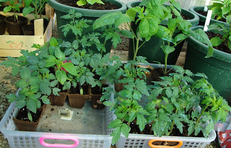 dentro ci sono ancora piantine di peperoni, pomodori, melanzane, immancabile il basilico ormai pronto per finire nell'orto Allegato: