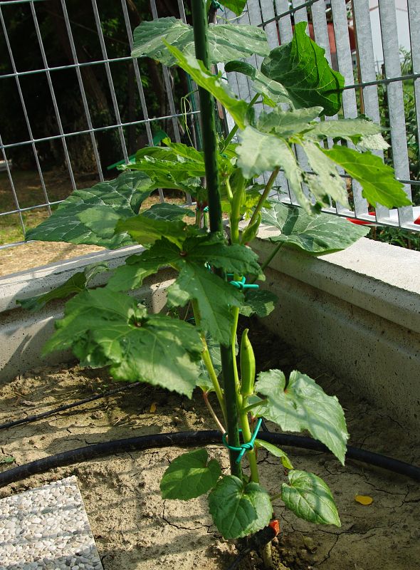 Pianta con il primo frutto di Ocra o Bamia.jpg