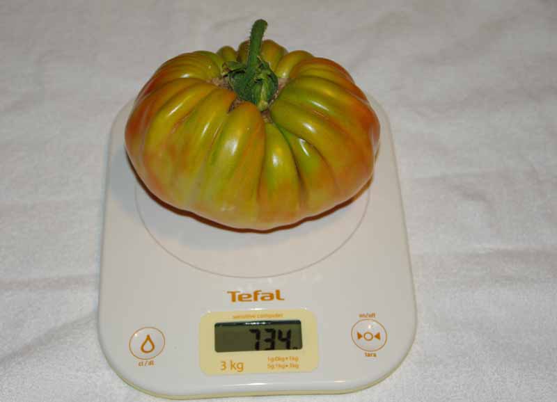 come vedete dalla foto il pomodoro raggiunge pezzature molto grandi, polpa molto buona da mangiiare in insalata con pochissimi semi, pianta con foglie molto diverse rispetto alle altre varietà