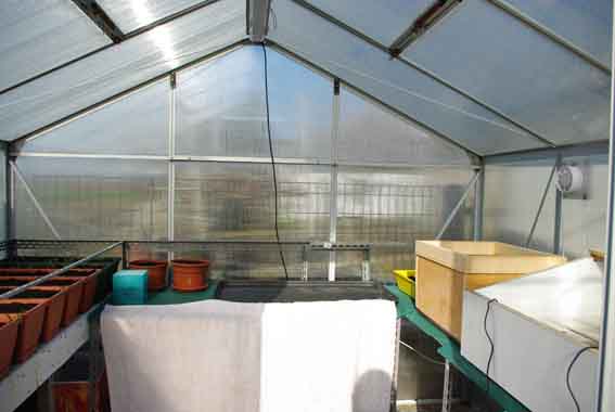 Continuo con l'interno della serra, il semenzaio appena costruito, il setaccio per il terriccio,