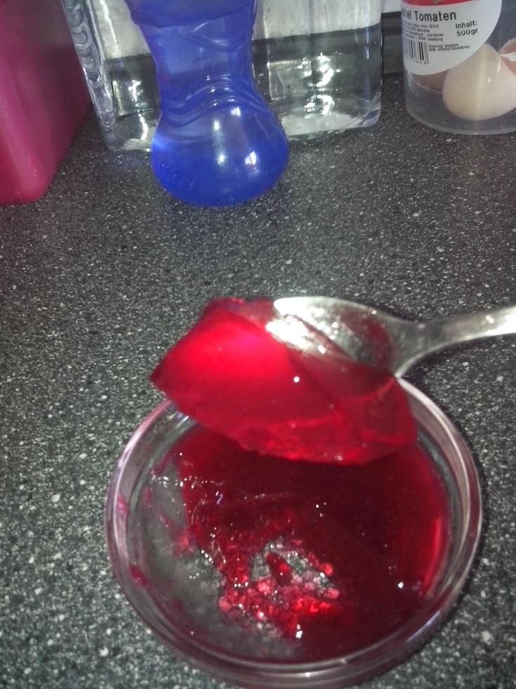 Frutti di ribes rosso e nero prima e dopo.. Lo gelè lo faccio cosi 500 grammi di frutti di ribes (io li mischio) faccio bollire con 500 grammi di acqua, poi lascio raffreddare, colo e ottengo il succo limpido. Poi metto a bollire i circa 750 grammi di succo con 500 grammi di zucchero e 100 grammi di gelatina.... appena freddo si presenta come sotto :-9 Buonissimo