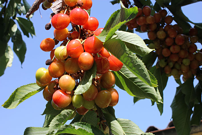 Un pò di pomodori, sembra che vadano bene. Finalmente le fave mature, era ora, e il ciliegio quest'anno fenomenale, sperando che i vermi restino a casa dal momento che diamo da mangiare ad una incredibile varietà di uccelli ma, quando c'è n'è... va bene così. A tutti un saluto.