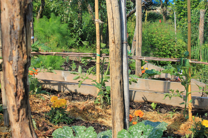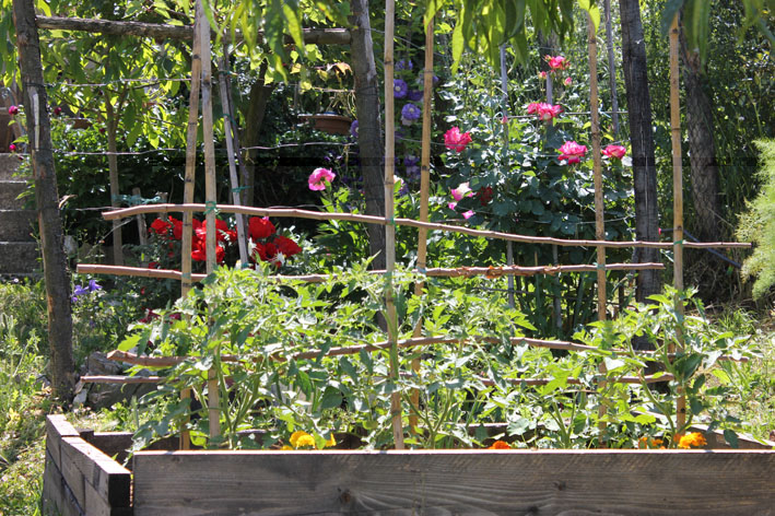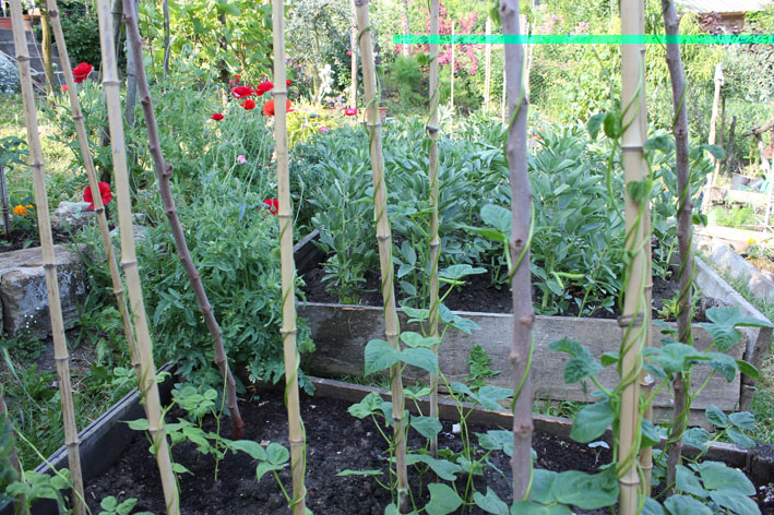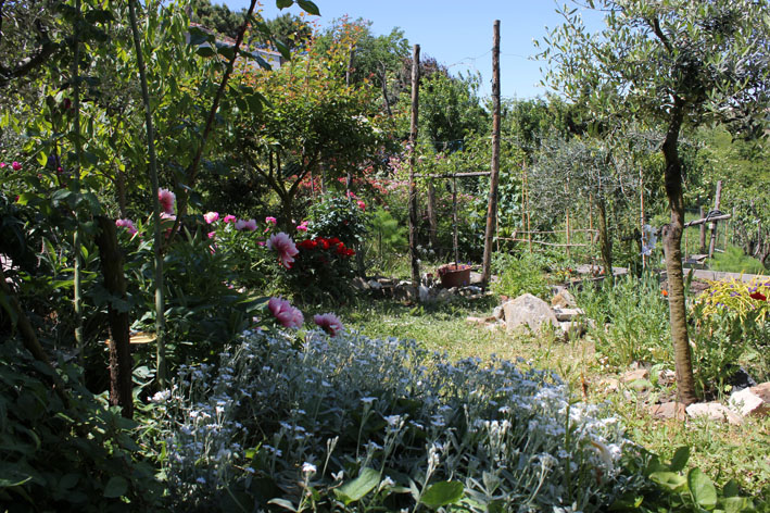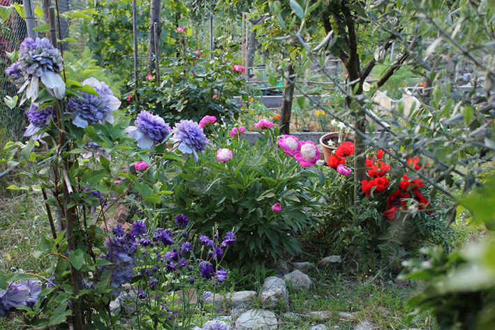 Foto dell'orto in corso. Sono spesso situazioni panoramiche, che descrivono spero, l'atmosfera che ho cercato di dare all'orto-giardino. C'è un pò di tutto. Come ho già avuto occasione di dire, mi piace mischiare tutte le piante. Il giardino è su tre livelli, questo comporta fatica!... ma anche soluzioni interessanti. L'orto in pendenza, mi ha suggerito di costruire delle casse in legno, per non costringermi a inseguire i pomodori giù dal pendio! Un pozzo, che questa estate dovrò sistemare, da l'acqua necessaria per le piante. Aggiungo che non tagliando l'erba del prato, i papaveri tranne quello orientale, sono assolutamente spontanei e numerosissimi, anche nella varietà. Infine, ci tengo a dirlo, che l'unica plastica che vi è e quella della canna dell'acqua..e qualche vaso, vedremo di abolire anche quella. In seguito conto di postare foto più particolareggiate che possano far vedere meglio come le piante evolvono nel tempo. Ripeto, ditemi tutto ma non che è incasinato. E' così che mi piace. Poi... per farlo così, apparentemente in disordine, mi costa molta fatica. L'ordine, mi inibisce la fantasia e, non so se le piante lo amano. Per ora così.