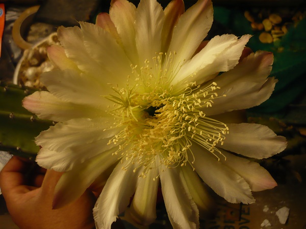 ho impollinato manualmente il fiore del cereus repandus. se tutto va bene farà un frutto come un fico d'india.