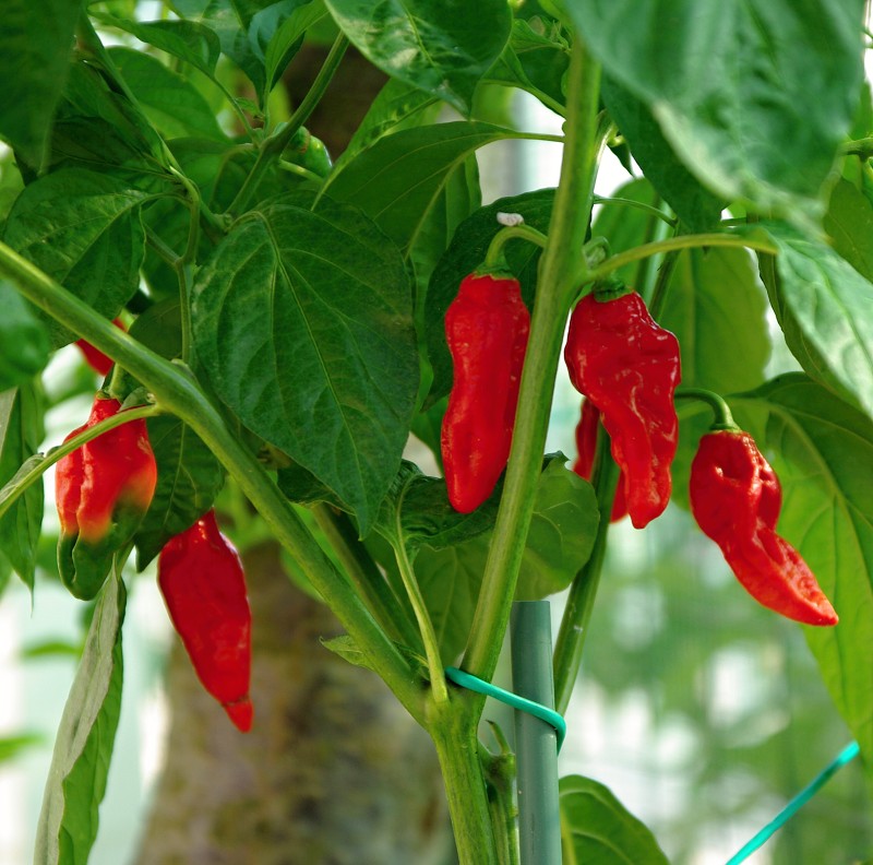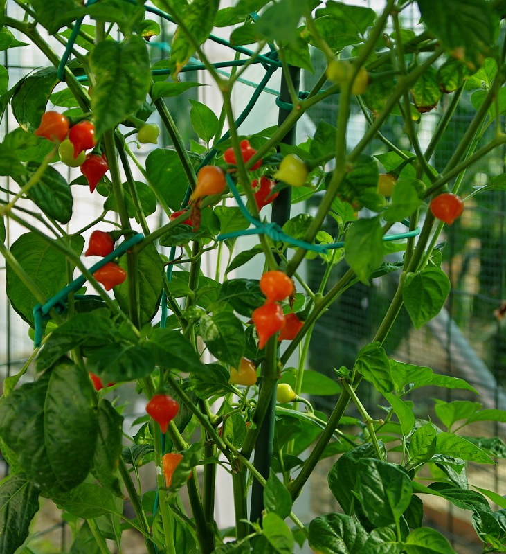 Habanero Red bello carico, iniziano a maturare qualche frutto