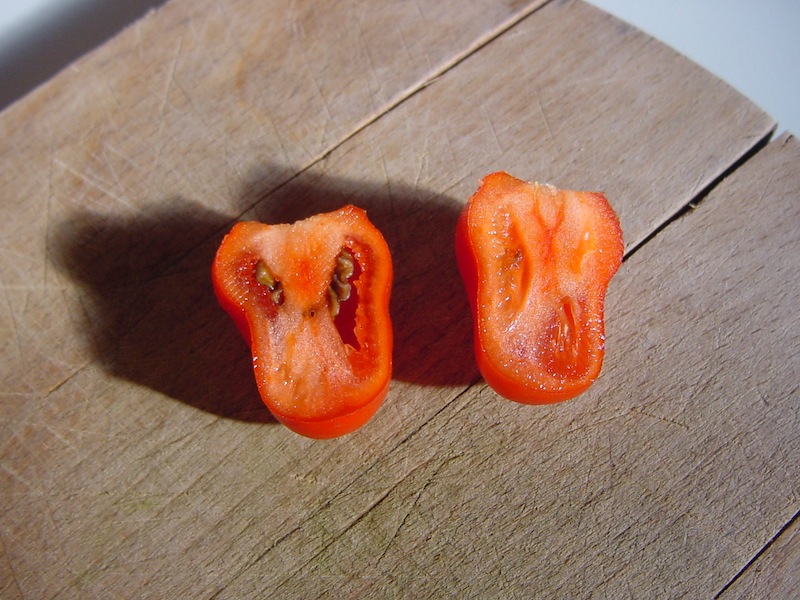 Il mio rocoto red  va beh più che maturo è appassito  ho dovuto mettere la pianta in vaso e metterla in casa... non è così piccante ... però il piccante è persistente e sente un pò di peperone  Allegato: