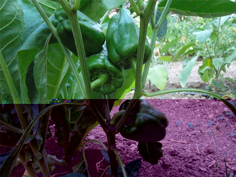 Nelle foto del terreno potete osservare le file di ortaggi, come pomodorini, melanzane, zucchine, peperoni, peperoncini, ecc..