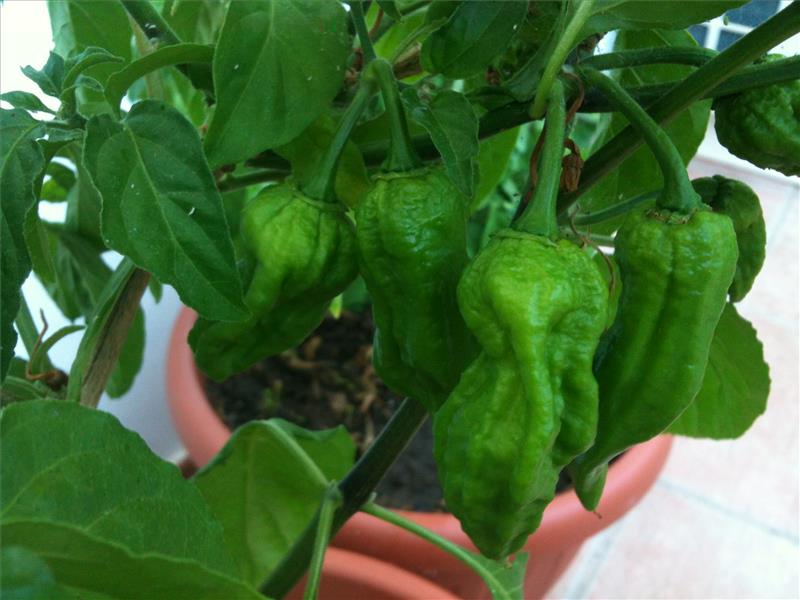 Il problema è che non so per certo di quali varietà di tratta. Di sicuro sono tra: Trinidad Scorpion, Bhut Jolokia, Naga Dorset, Habanero (Red savina, white, chocolate). Sono obbligatoramente uno di questi in quanto sono quelli che ho seminato (nel 2012), e svernato per la seconda volta quest'anno (etichette perse). Spero possiate aiutarmi.