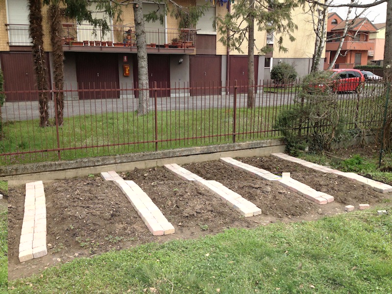 Si tratta di 8 aiuole "principali" di 2,50x1,20 mt circa, e qualche spazio più piccolo ricavato dagli avanzi!