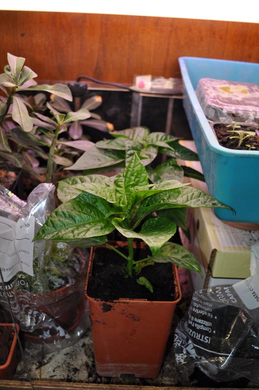 Nel lightbox l'alchechengi sta crescendo molto bene, ho anche due piantine di habanero red caribbean che ho acquistato la settimana scorsa ad una manifestazione che fanno ogni anno a Carpi.