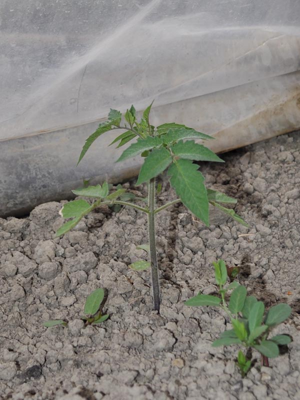 In effetti c'è ancora un clima piuttosto freddo la notte, anche stamattina c'erano 5 °C, però dentro la serra non sembrano soffrire particolarmente le piante, le uniche che vanno un poco a rilento sono le melanzane.