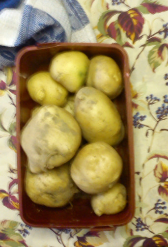 oggi ho colto le prime melanzane . i primi fagiolino stringa ,,,poi ho fatto una prova anche se non e ancora il tempo x cogliere patate ,, vedendo un pianta secca di patata lo levato e sotto guardate il risultato ... alle patate in questo momento a bisogno di acqua ? o altro ......