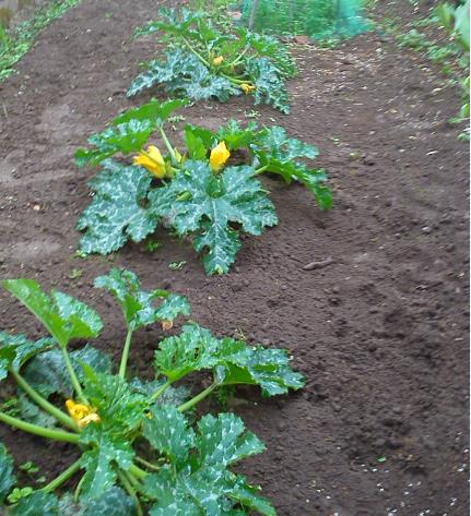 Mi sa che dovrai metterci delle canne alle zucchine, è una varietà che per adesso crescerà verso l'alto... (una canna singola)