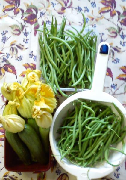 Cavolo, quanta roba che raccogli.... per raccogliere i fagiolini mettiti direttamente in ginocchio, così eviti il mal di schiena... anche io ho un mucchio di pomodorini verdi, alcuni datterini ho iniziato a raccoglierli.... Ciao