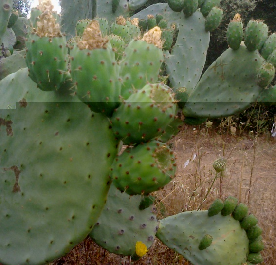 Guarda Pierogio ti posto una foto dei miei fichi d'india, sulla foglia dapprima nasce un fiore e man mano alla sua base si forma il frutto che come cresce perderà il fiore e poi matura... Nella prima foto si vedono i frutti che hanno perso il fiore e nell'altra un frutto con il fiore attaccato