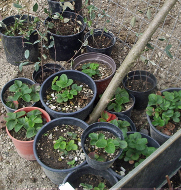 II foto: le mie giovani fragole: ottenute l’autunno scorso dai stoloni. Aspettano un posto per trapiantarle.