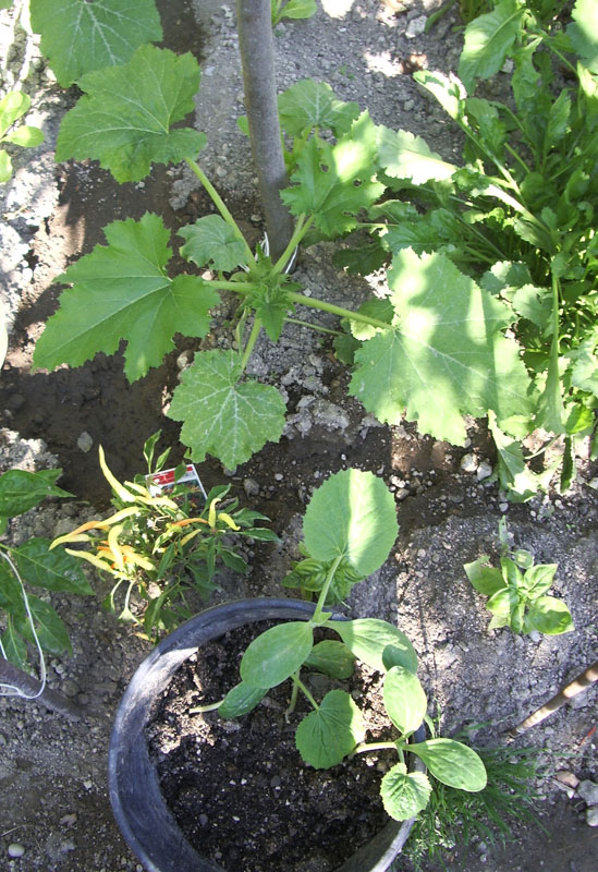 la zucca adesso ha 5 rami e solo fiori. Quando vedrò qualche frutto, comincerò a cimare, se ci riesco; ma cimerò una delle 2 zucche (x vedere che differenza fa).