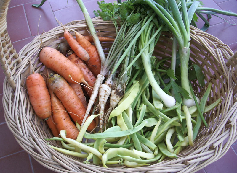 Como è bello ed invitante l'orto a fine giornata, l'ora della raccolta.