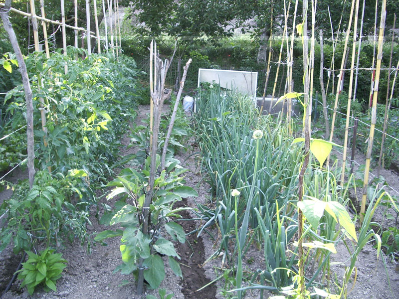 4. Pomodori, melanzane, aglio, cipolla che presto si raccoglieranno,