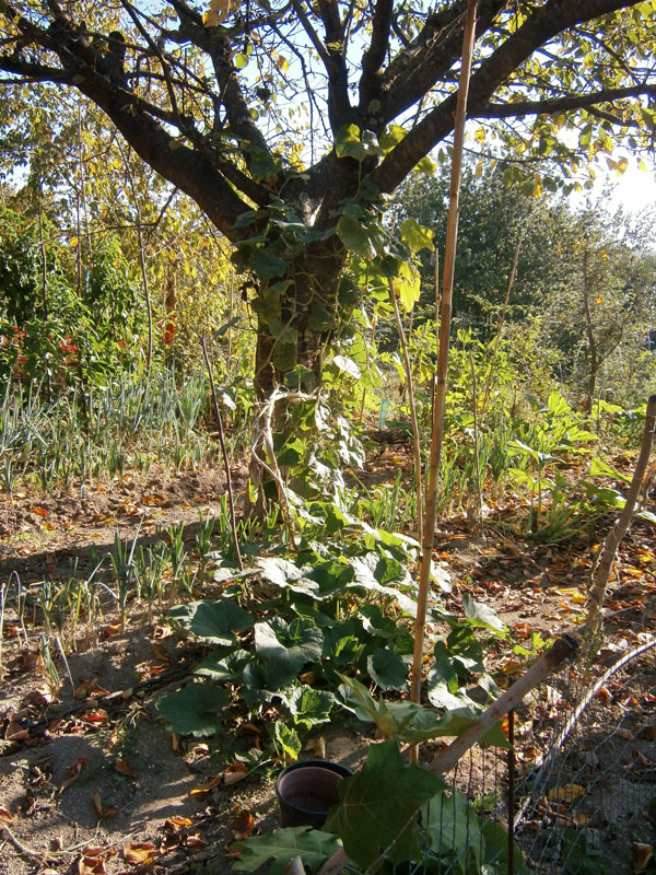 foto 1: per Nino e Sergios - vi presento le solanum torvum. Le ho piantate un po’ d’dappertutto. Speriamo che c’è la faranno a superare l’inverno. foto 2: i miei semi – la grande parte sono le mie raccolte foto 3: un’altra delle zucche che si è arrampicata nel ciliegio. foto 4: una zucchina che mi è sfuggita ed e cresciuta troppo, rimarrà x prendere i semini.