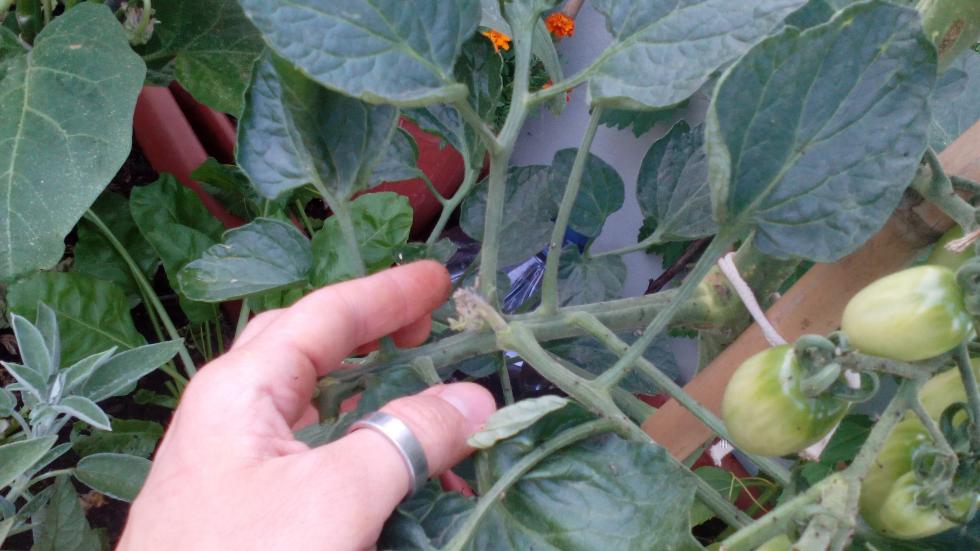 Sempre in mansarda le melanzane iniziano a cacciare i primi fiori e frutti mentre i pomodori aspettano solo di maturare.