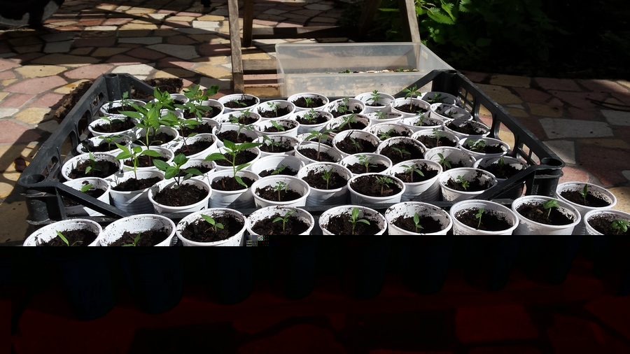 Approfittando della bella giornata ho fatto fare un'escursione al sole alle mie piantine (peperoni, peperoncini, pomodori, melanzane , basilico).