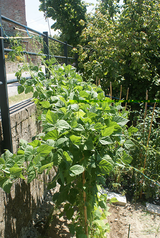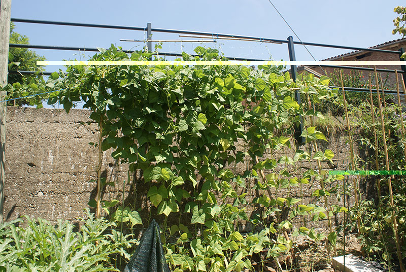 vi ricordate che vi avevo parlato del groviglio dei fagioli rampicanti? stufo della matassa che si stava creando mi sono ingeniato a trovare una soluzione che al momento sembra reggere..