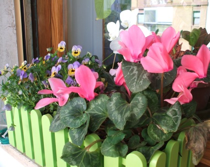 ... e per salutarvi, ancora una pennellata di primavera ed un saluto dal davanzale cittadino che non vuole essere da meno della cugina aiuola.....