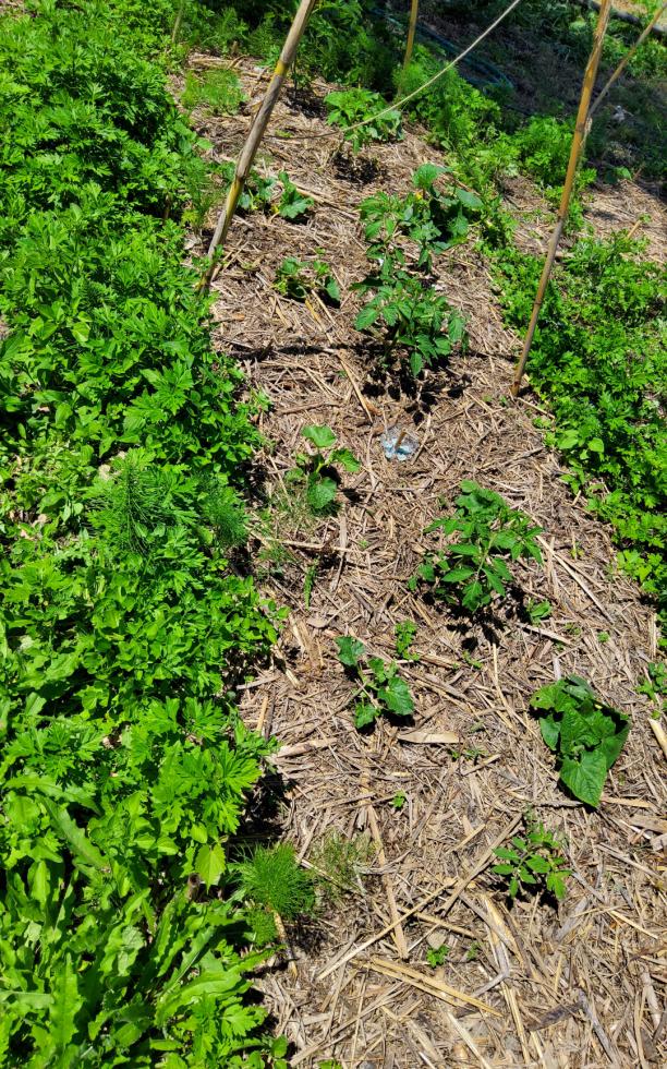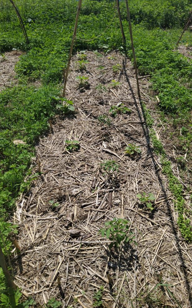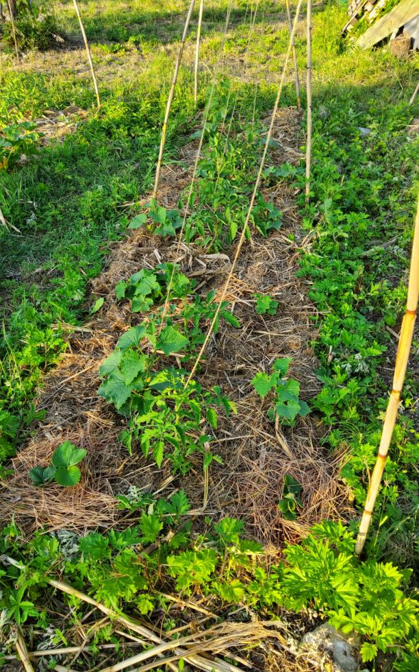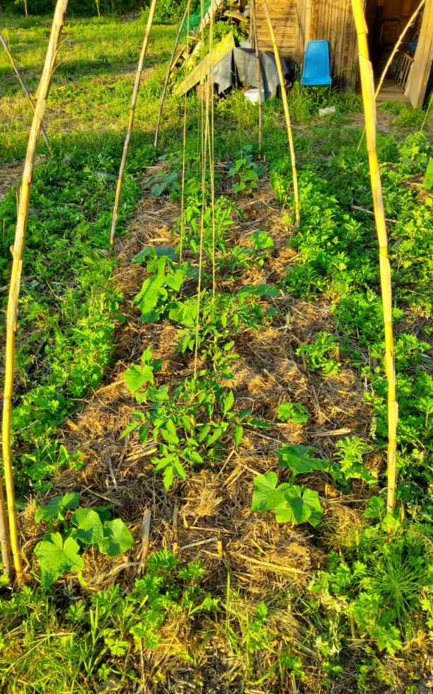 Oggi con la scusa di aggiungere aghi di pino sulle fragole ho approfittato per seminare negli spazi vuoti una fila di carote, di porri e alcune bietole. Poi, visto che l'altra volta i semi di fagiolo me li hanno razziati gli uccelli, ne ho piantati degli altri nell'ultima aiuola. Comincio a raccogliere foglie di bietola, cetrioli e cetriolini. Qualche fragola l'ho assaggiata ad aprile e un giovane gelso mi ha regalato le prime more. Penso che l'orto stia andando bene